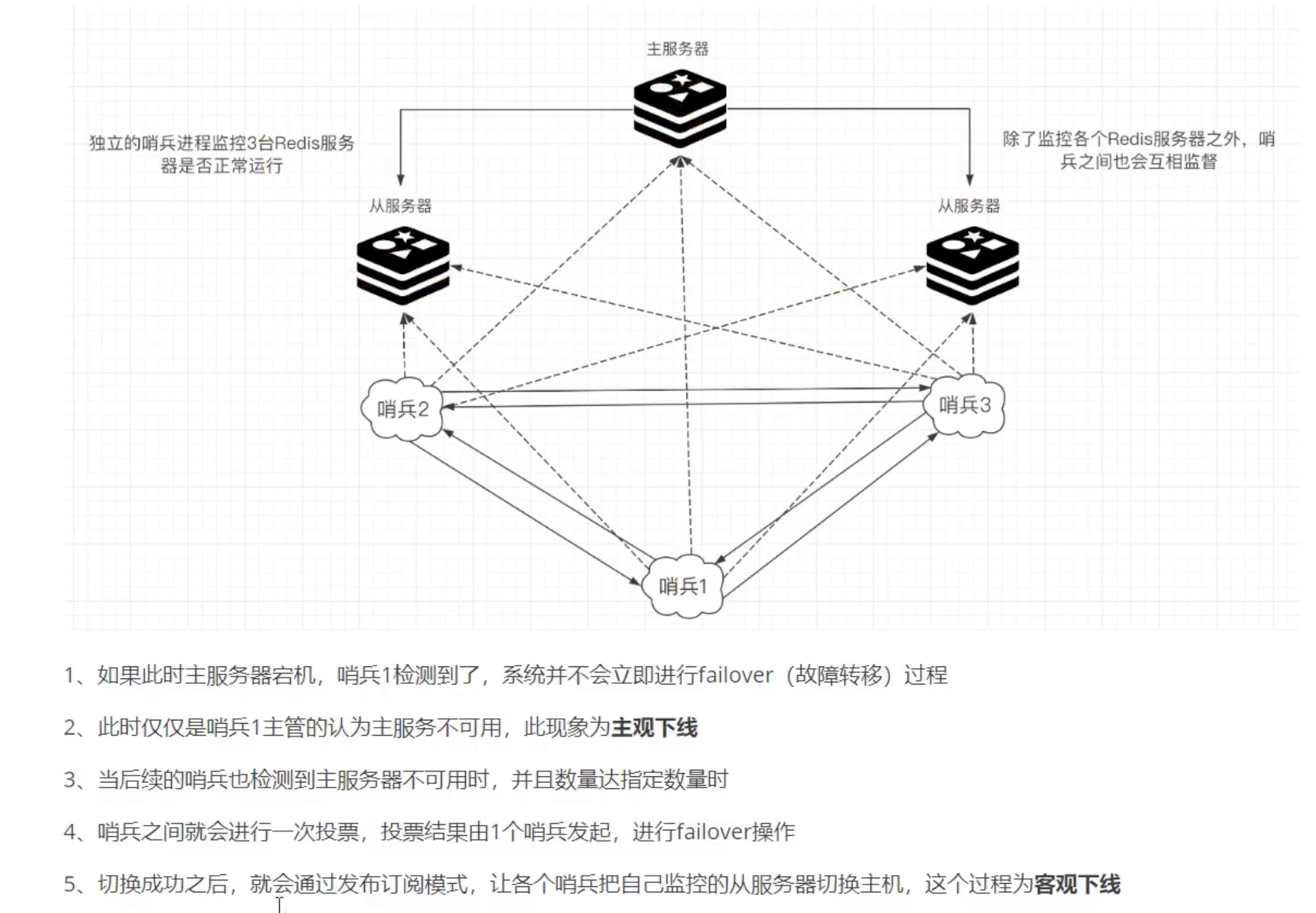 定主服务器是否已经下线,以及选择哪个从服务器升级为新的主服务器。