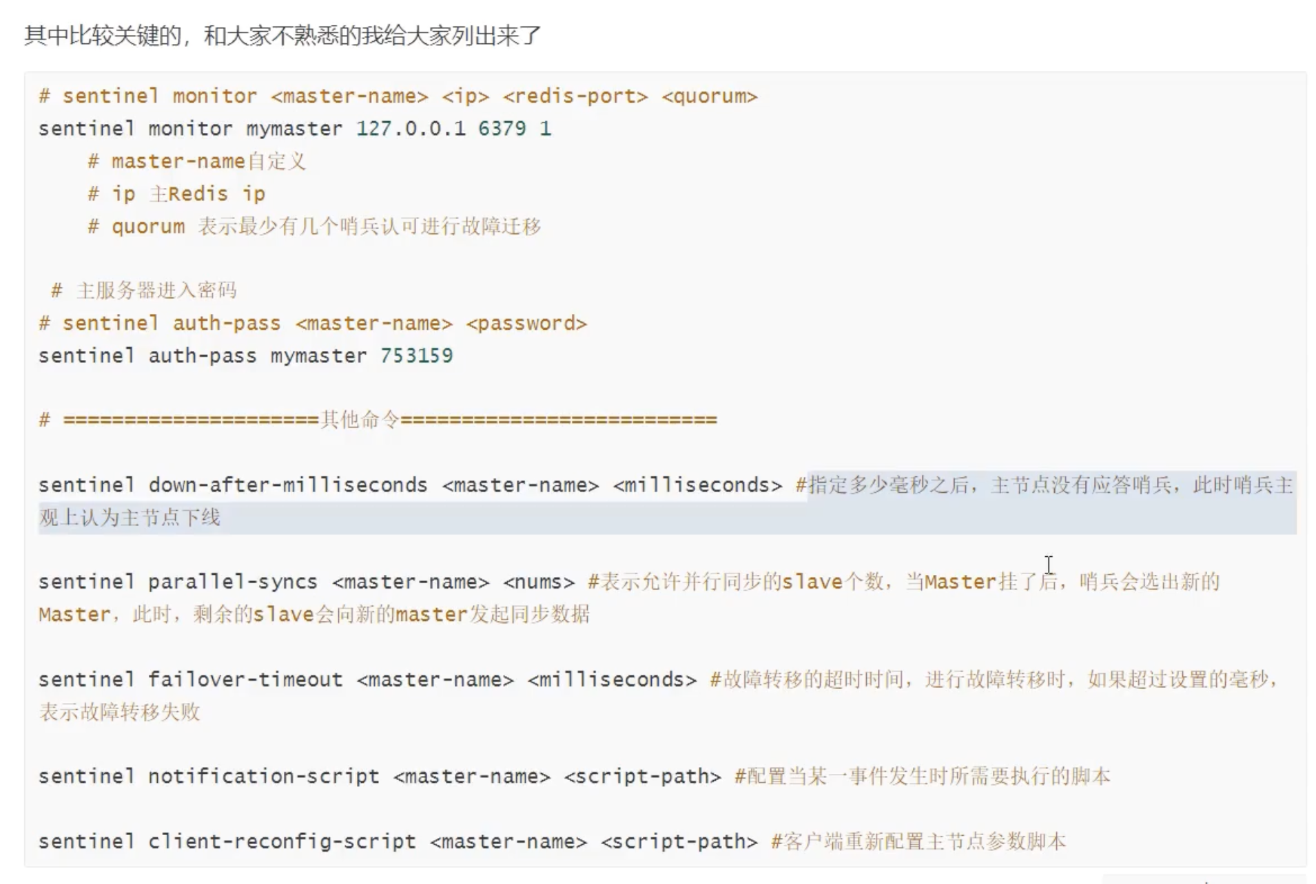 线。quorum的值最好超过Sentinel实例数的一半在实际应用中,哨兵模式通常用于提高Redis的可用性,对于有高可用需求的系统,哨兵模式是一个很好的解决方案。