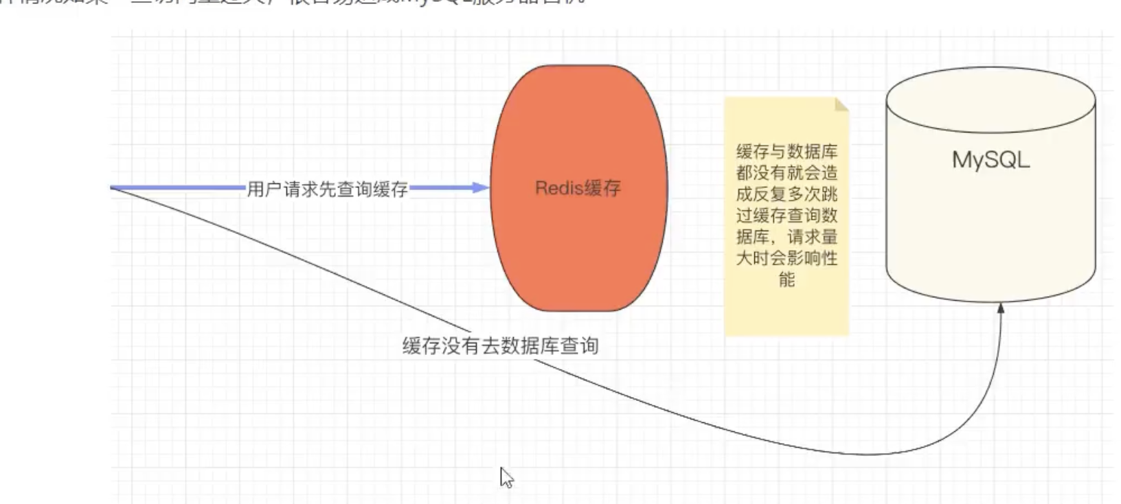 缓存穿透是指查询一个在缓存和数据库中都不存在的数据。由于缓存没有这个数据,所以每次查询都会“穿透“缓存直接查询数据库,如果有大量此类查询,会给数据库带来极大的压力。
