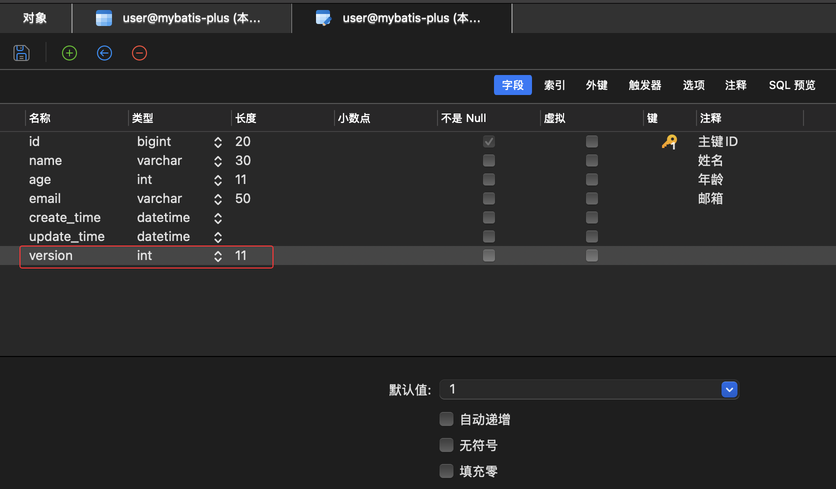 1. 需要在数据库User表中添加版本version字段